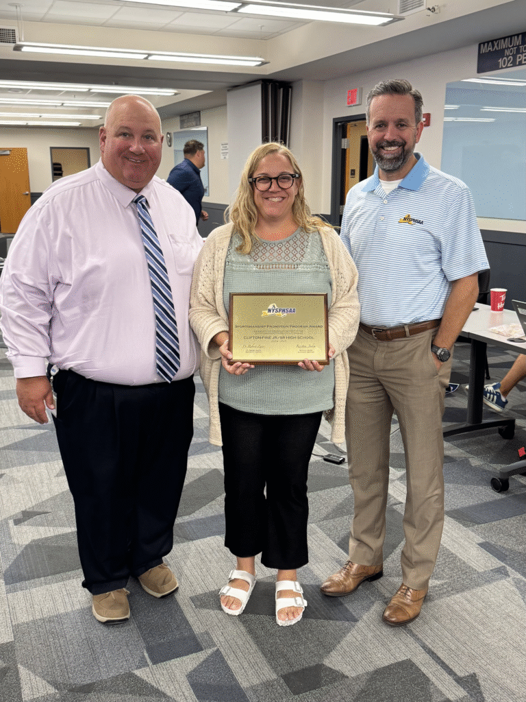 Section X athletic directors accepted the 2024-25 New York State Public High School Athletic Association (NYSPHSAA) Sportsmanship Promotion Program Awards, Scholar-Athlete School of Excellence Awards, and Student-Athlete School of Distinction Awards on behalf of their student-athletes on Tuesday, Sept. 16.